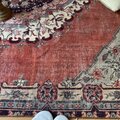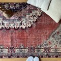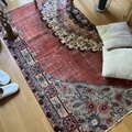 ヴィンテージラグは古い手織物のため使用感や糸のほつれ、補修跡、補強跡、ヨレやシミ、色むら、毛羽立ちなども見られる場合がございます。ヴィンテージラグの魅力としてご理解いただき、良いと思える方にご購入いただけると幸いです。