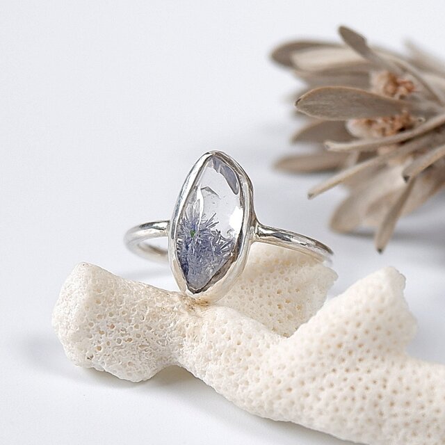 デュモルチェライトインクォーツをシンプルなリングに仕上げました。