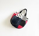 デニムのパッチワークバッグ 黒×赤 ドット チェック ボーダー モノトーン A4