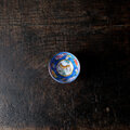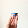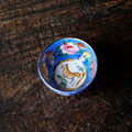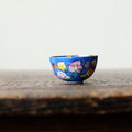鮮やかな青◆見込みに戌(犬)。 中国景徳鎮 干支 色絵金彩小ぶり猪口 チャイナレトロ シノワズリ