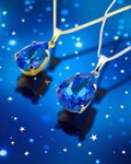 深く吸い込まれそうなロイヤルブルーに、乳白色を伴う淡い紫の光が差し込む、美しいクリスタルガラスの雫型ネックレスです。