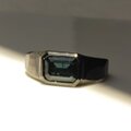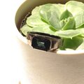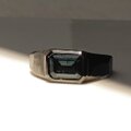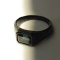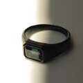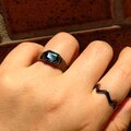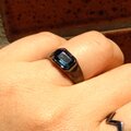 ブラックのリングの中、石が光を反射する時にキラッと輝く深いブルー