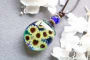 バーナーワークの技法で制作した、手作りのガラスのペンダントです。