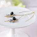 ロングフックピアスがこなれ感も演出しれくれるるピアスに仕上げています