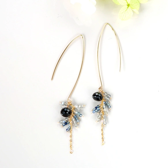 14kgf/ブラックスピネルxラブラドライトロングV シェイプピアス