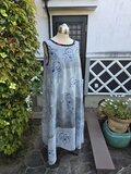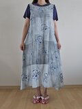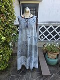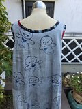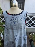 鉄媒染した手ぬぐいをリメイクしてジャンパースカートを作りました。