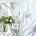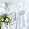 サイトの写真よりなお美しいブローチが届きました!白なのに光でさまざまな色が差し、季節を問わずどんな服にも映えそうです。 包装もとても丁寧で、作品への愛と購入者への心遣いが溢れており、とても幸せな気持ちになりました。 素敵な作品をありがとうございました!きっとまたご縁がつながる気がします。