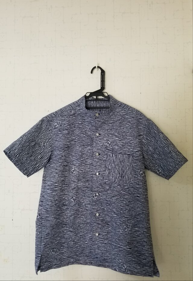 紳士浴衣リメイク スタンドカラーシャツ M~Lサイズ