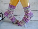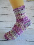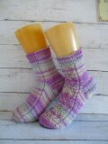 ドイツのブランド Lana Grossa Meilenweit Cotone Vegano Frutti 8204と名前のついている糸で編んだコットンソックスです。