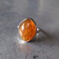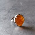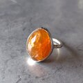 ボリュームのある笑窪が可愛らしい鮮やかなオレンジ色のファイアオパールをシルバーリングに仕立てました。