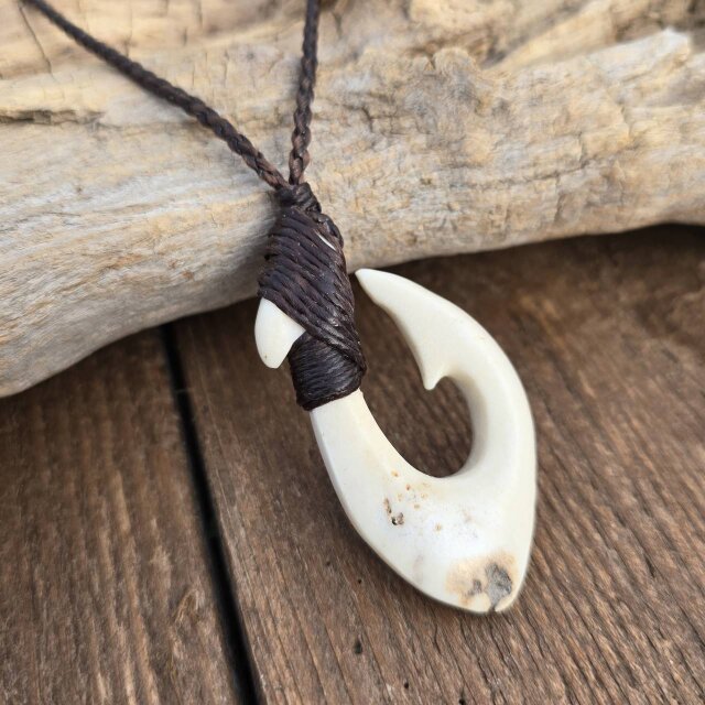 フィッシュフックは幸運を釣り上げるラッキーアイテムとされており、左側を向くように身に着ける(先端が心臓側)と、誤って海に落ちて溺れた時に、フィッシュフックが心臓に引っ掛かり、海に沈むのを防いでくれるとも言われています。