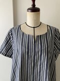 落ち着いたグレー系のストライプなので、お仕事着にもピッタリです。とても軽くて涼しいコットン。