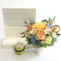 作品、無事にお迎えしました。 やさしい色合いのアレンジメント、お世話になった先輩の退職祝いに購入させていただきました。 きっと気に入っていただけると思います。 この度は、素敵な作品をありがとうございました。