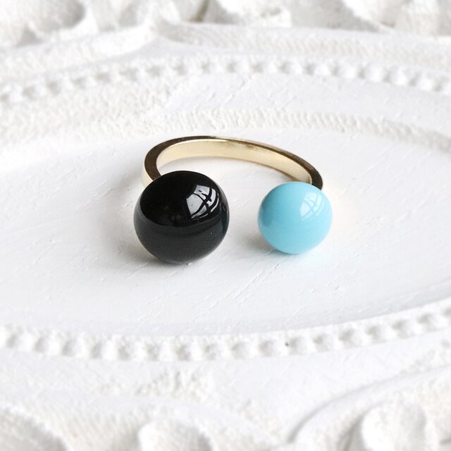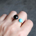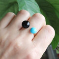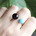 キングマンターコイズ×ブラックオニキス フォークリング|天然石|フリーサイズ — Two stones —