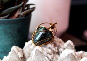 1995年、メキシコにおいて、ロンとカレンの二人によって発見されたと伝えられています。名前の由来は、この石の柄模様が「星雲 ネビュラ」に見えることから名付けられました。深いダークグリーンの色合いと、神秘的なゴールドの輝きは、まるで銀河系の彼方を思わせるようだと言われています。ネビュラストーンは、「エルダライト」という名でも知られています。