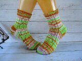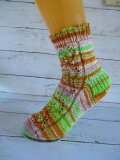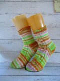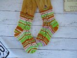 ドイツのブランド Lana Grossa Meilenweit Cotone Vegano Frutti 8203と名前のついている糸で編んだコットンソックスです。