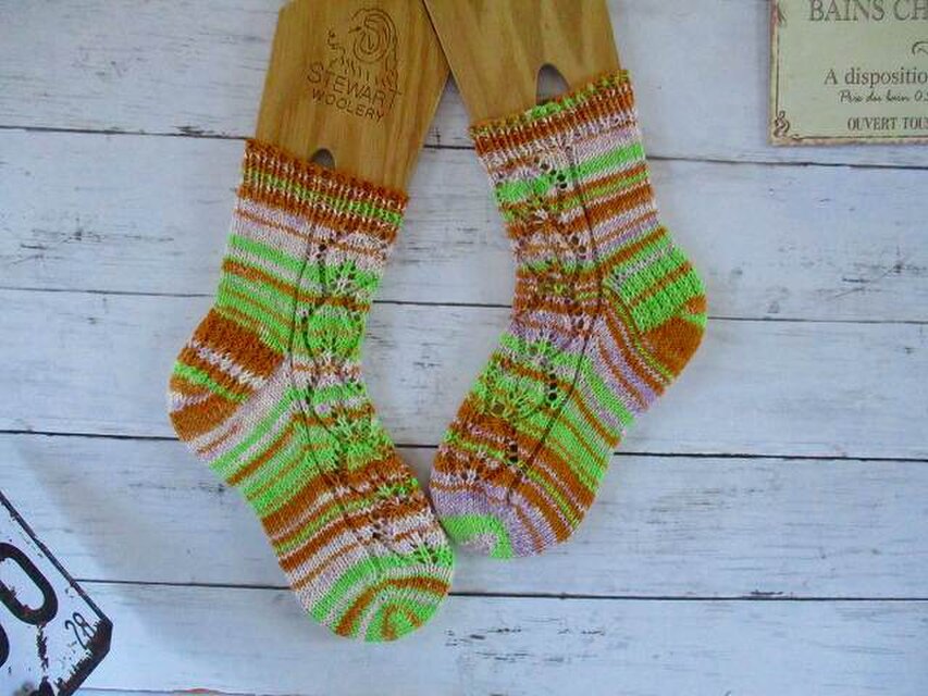 本日届きました。 写真で見た以上に温かで素敵な色合いの靴下でした。 締め付け感なくさらっと履けて初めての感触で気に入りました。 これはまた欲しくなりますね! おまけも可愛く、ありがとうございました。