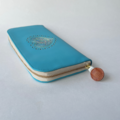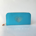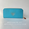 刺繍革財布『HEART』ターコイズ(牛革)☆Slimラウンドファスナー☆