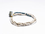 アンティークホワイトシードビーズとインディゴブルービーズの4連ブレス(oldコイン留め金)
