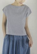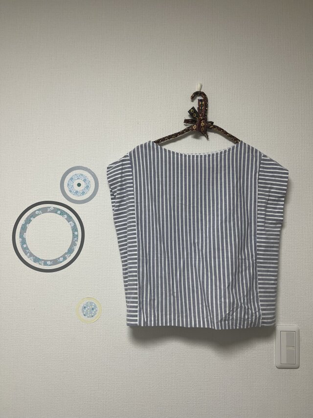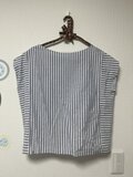 コットンリネンのダンガリーストライプでフレンチスリーブのプルオーバーを縫いました。