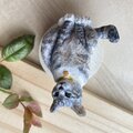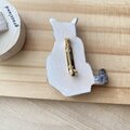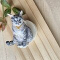 リピートです。今度の作品も大変可愛く、ぬくもりを感じます。木彫りですので軽やかなのも良いですし、毛並みがまるで本物の猫のように見えます! 付けない時は前回購入したブローチとセットで飾ります。 今回もありがとうございました!