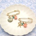 コーラルピンクやターコイズカラーのチェコビーズとマリンチャームの