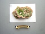 花びらのバレッタ Lサイズ ■ フラットデザイン コットンパール ■ グリーンピンク