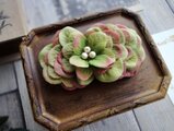 花びらのバレッタ Lサイズ ■ フラットデザイン コットンパール ■ グリーンレッド