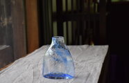 木の葉の形をした花瓶で挿し口は小さく丸くすぼんでいます。