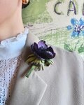 濃い黒紫のアネモネコサージュです。中心の花芯部分は黒でまとめました。花びらは手で開閉できます。