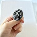 きりっとした黒の中でより、ビーズの輝きがアクセントになっているブローチです。
