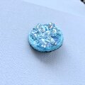 太陽の日差しの中、爽やかなブルーの色合いにきらきらとしたプリズムを纏うブローチです。