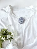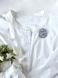 とてもとても素敵なブローチです。青、紺色系の服につけようと購入しましたが、ブローチに使われている数種類の青が美しく馴染みます。そして少し神秘的。 物語のようなブローチの名前にも引き込まれました。 素敵なブローチをありがとうございました。
