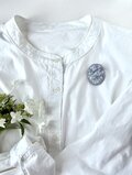 サイトの写真よりなお美しいブローチが届きました!白なのに光でさまざまな色が差し、季節を問わずどんな服にも映えそうです。 包装もとても丁寧で、作品への愛と購入者への心遣いが溢れており、とても幸せな気持ちになりました。 素敵な作品をありがとうございました!きっとまたご縁がつながる気がします。