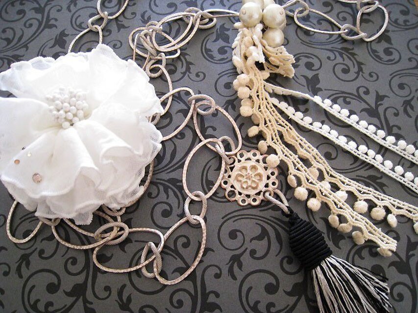 中央にはモノトーンのタッセルを下げて、大人可愛いい雰囲気です。