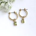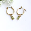 宝石質ペリドット 枠留め2wayフープピアス(イヤリング)/ アレルギー対応 — Olive green —