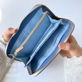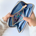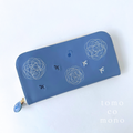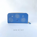 刺繍革財布『Sora ni tori』はなだBLUE(牛革)ラウンドファスナー型☆Slimタイプ☆