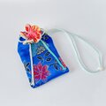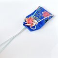 こちらは光沢のあるブルーにピンクやブルーの花がデザインされたエスニックな雰囲気が特徴です