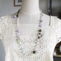 シャーベットカラーの柔かく、爽やかなイメージのロングネックレスです。