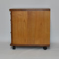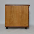 非対称ウォールナットの取っ手を採用した手間のかかったワゴンです。外部に栗の無垢材、内部にアガチスの無垢材を使い、質感の溢れるお品です。前輪のキャスターにはストッパーが付いてます。書斎やキッチンやリビングなど用途は自由な品です。画像がお届けするお品となります。他サイトでも販売の為、在庫有でも売り切れの場合がありますのでご了承ください。