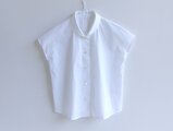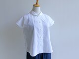 白の播州織サッカー生地を使った、爽やかな着心地のフレンチスリーブ・ブラウスです。