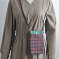 セール✨【送料無料】手ぶらでお出かけ帆布スマホポシェット スマホショルダー スマホポーチ チェック グリーン No.370