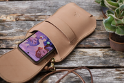 本革サドルレザーのスマホショルダーフラップ型【受注製作】
