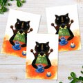 お茶をする猫のイラストポストカードの3枚セット(同柄)です。
