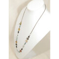 カラフルなフローライトや鮮やかなブルーグリーンのクリソコラ等のロングネックレスです。