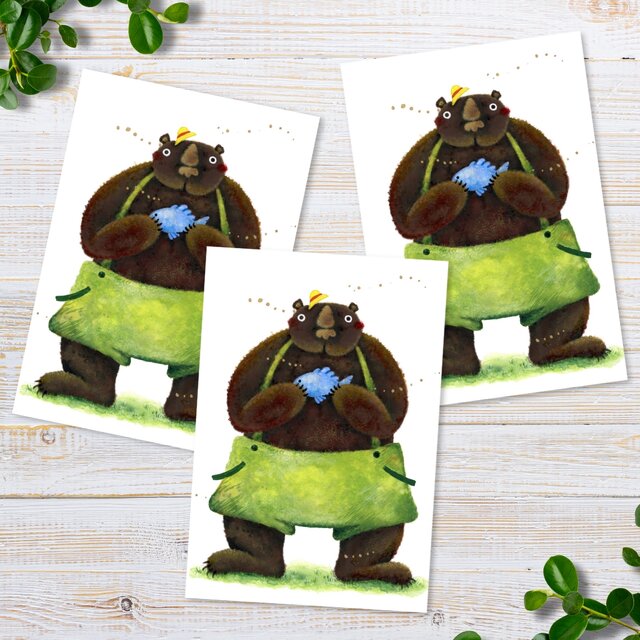 食いしんぼう熊さんのイラストポストカードの3枚セット(同柄)です。