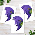 紫色のお月様とお花のイラストポストカードの3枚セット(同柄)です。
