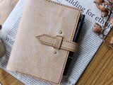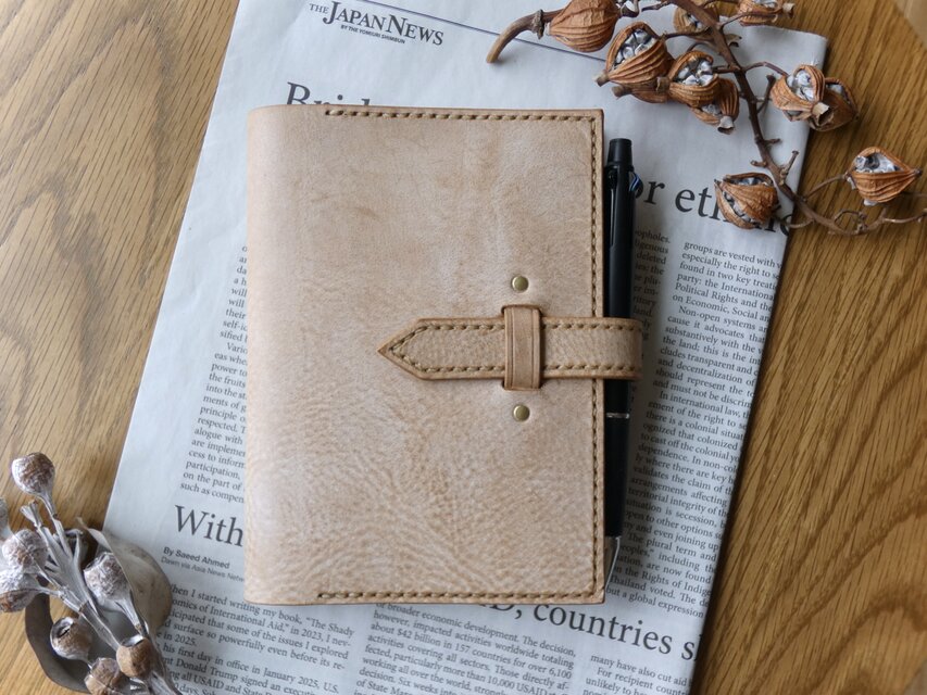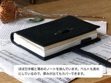 ・ノートの厚さは1.0㎝〜1.5㎝を基準にお作りしております。ベルトが長めなので、多少厚くなってもしっかり閉じることが出来ます。写真に写っているノートは、ほぼ日手帳です。