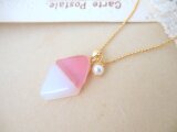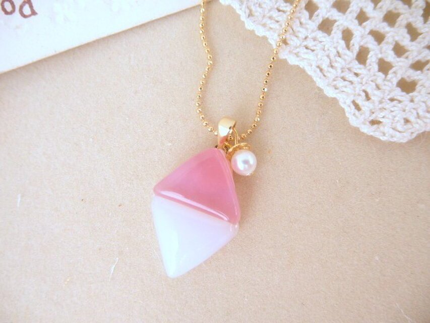 ガラスの、ちいさなさんかくの形を、二つ組み合わせました、かわいいパステルカラーのネックレスです。