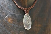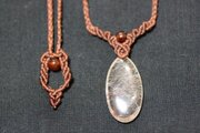 ブラジル産の天然石(パワーストーン)ルチルクォーツとオレンジガーネット(ヘソナイト)をロウビキ紐を使ってマクラメ編みしたネックレス(ペンダント)です。